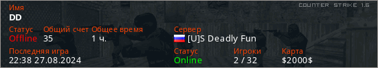 Играет на Counter Strike 1.6 сервере. Страна: РоссияПервый раз замечен 14:03 04.06.2022