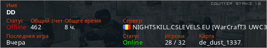Последний раз был в сети Вчера Игрок с таким ником замечен на 37 серверах
