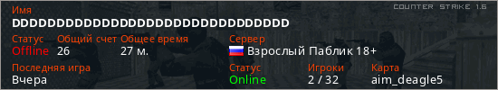 Последний раз был в сети Вчера Игрок с таким ником замечен на 15 серверах