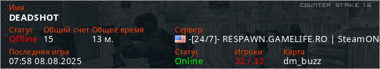 Играет на Counter Strike 1.6 сервере. Страна: СШАПервый раз замечен 07:32 18.02.2025