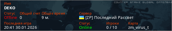 Играет на Counter Strike Global Offensive сервере. Страна: УкраинаПервый раз замечен 19:59 30.01.2026