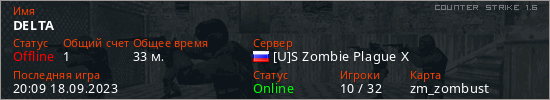 Играет на Counter Strike 1.6 сервере. Страна: РоссияПервый раз замечен 20:24 03.02.2023
