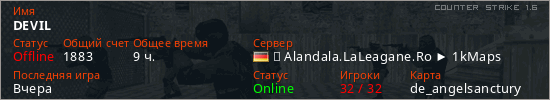 Последний раз был в сети Вчера Игрок с таким ником замечен на 28 серверах