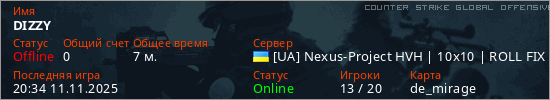 Играет на Counter Strike Global Offensive сервере. Страна: УкраинаПервый раз замечен 20:04 10.11.2025