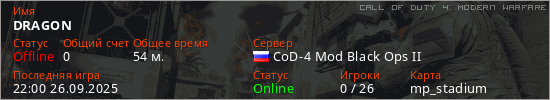 Играет на Call of Duty 4: Modern Warfare сервере. Страна: РоссияПервый раз замечен 22:16 04.12.2023