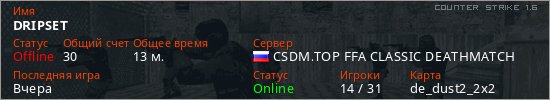 Последний раз был в сети Вчера Игрок с таким ником замечен на 2 серверах