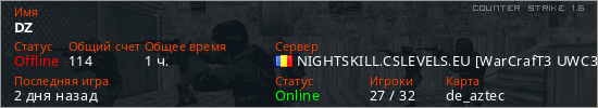 Играет на Counter Strike 1.6 сервере. Страна: РумынияПервый раз замечен 23:05 28.09.2024