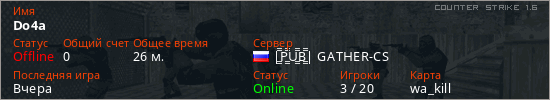 Последний раз был в сети Вчера Игрок с таким ником замечен на 18 серверах
