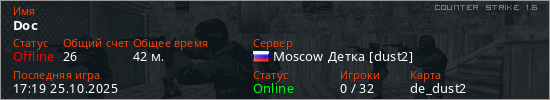 Последний раз был в сети 17:19 25.10.2025 Игрок с таким ником замечен на 35 серверах