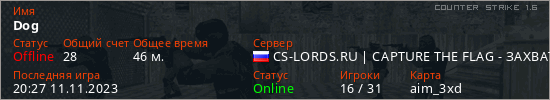 Играет на Counter Strike 1.6 сервере. Страна: РоссияПервый раз замечен 11:18 17.09.2020