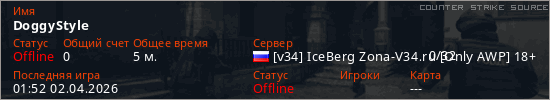 Играет на Counter Strike Source сервере. Страна: РоссияПервый раз замечен 01:49 02.04.2026