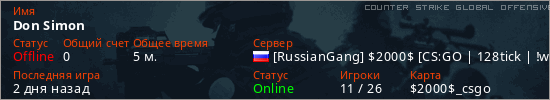 Играет на Counter Strike Global Offensive сервере. Страна: РоссияПервый раз замечен 19:56 07.03.2026