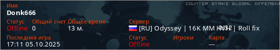 Играет на Counter Strike Global Offensive сервере. Страна: РоссияПервый раз замечен 18:02 01.07.2025