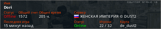 Играет на Counter Strike 1.6 сервере. Страна: РоссияПервый раз замечен 05:46 10.12.2024