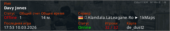 Играет на Counter Strike 1.6 сервере. Страна: ГерманияПервый раз замечен 15:02 10.03.2026