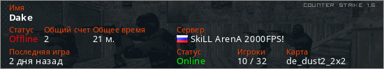 Последний раз был в сети 2 дня назад Игрок с таким ником замечен на 32 серверах