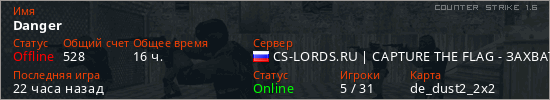 Последний раз был в сети 21 час назад Игрок с таким ником замечен на 35 серверах