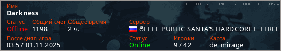 Играет на Counter Strike Global Offensive сервере. Страна: РоссияПервый раз замечен 11:12 27.09.2025