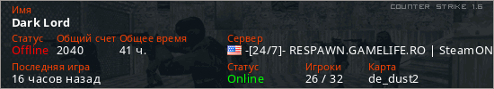 Играет на Counter Strike 1.6 сервере. Страна: СШАПервый раз замечен 19:48 12.02.2025