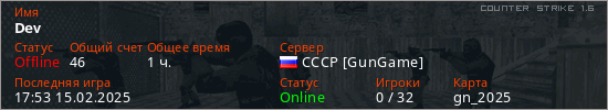 Последний раз был в сети 17:53 15.02.2025 Игрок с таким ником замечен на 18 серверах