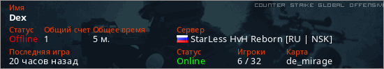 Играет на Counter Strike Global Offensive сервере. Страна: РоссияПервый раз замечен 19:50 29.01.2026