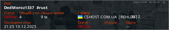 Играет на Counter Strike 1.6 сервере. Страна: УкраинаПервый раз замечен 16:29 10.12.2025