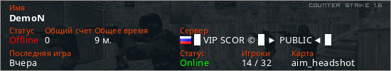 Последний раз был в сети Вчера Игрок с таким ником замечен на 30 серверах