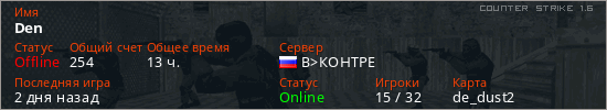 Играет на Counter Strike 1.6 сервере. Страна: РоссияПервый раз замечен 22:48 20.09.2021