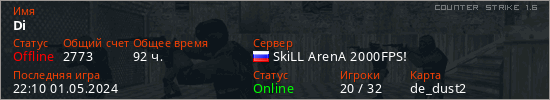 Играет на Counter Strike 1.6 сервере. Страна: РоссияПервый раз замечен 09:15 19.08.2022