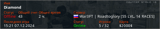 Последний раз был в сети 15:21 07.12.2024 Игрок с таким ником замечен на 34 серверах