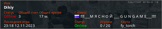 Последний раз был в сети 23:18 12.11.2023 Игрок с таким ником замечен на 14 серверах