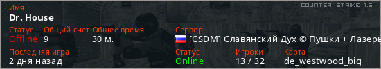 Играет на Counter Strike 1.6 сервере. Страна: РоссияПервый раз замечен 08:53 19.04.2026
