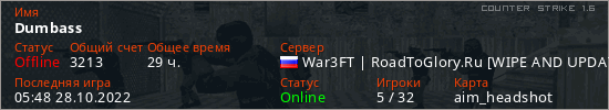 Играет на Counter Strike 1.6 сервере. Страна: РоссияПервый раз замечен 03:43 10.10.2021