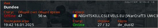 Играет на Counter Strike 1.6 сервере. Страна: РумынияПервый раз замечен 13:55 15.01.2025