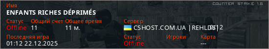 Играет на Counter Strike 1.6 сервере. Страна: УкраинаПервый раз замечен 10:31 16.12.2025