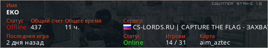 Последний раз был в сети 2 дня назад Игрок с таким ником замечен на 16 серверах