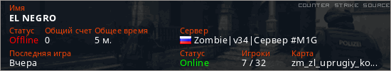 Играет на Counter Strike Source сервере. Страна: РоссияПервый раз замечен 22:53 20.04.2026