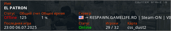 Играет на Counter Strike 1.6 сервере. Страна: СШАПервый раз замечен 12:27 30.06.2025