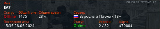 Играет на Counter Strike 1.6 сервере. Страна: РоссияПервый раз замечен 22:15 12.03.2020