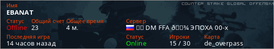 Играет на Counter Strike Global Offensive сервере. Страна: РоссияПервый раз замечен 19:20 06.03.2026