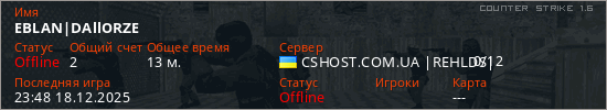 Играет на Counter Strike 1.6 сервере. Страна: УкраинаПервый раз замечен 18:09 17.12.2025