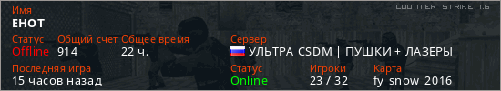 Последний раз был в сети 13 часов назад Игрок с таким ником замечен на 26 серверах
