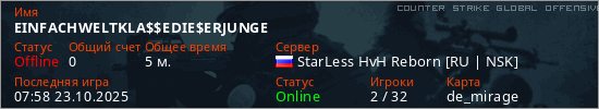 Играет на Counter Strike Global Offensive сервере. Страна: РоссияПервый раз замечен 07:51 23.10.2025