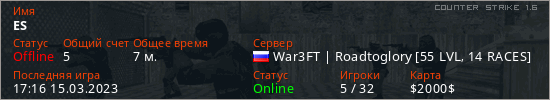 Играет на Counter Strike 1.6 сервере. Страна: РоссияПервый раз замечен 17:12 15.03.2023