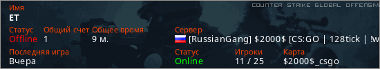 Играет на Counter Strike Global Offensive сервере. Страна: РоссияПервый раз замечен 14:07 14.03.2026