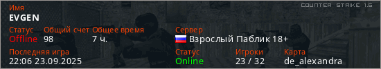 Последний раз был в сети 22:06 23.09.2025 Игрок с таким ником замечен на 18 серверах