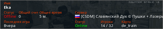 Играет на Counter Strike 1.6 сервере. Страна: РоссияПервый раз замечен 17:30 20.12.2025