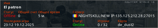 Играет на Counter Strike 1.6 сервере. Страна: РумынияПервый раз замечен 23:08 19.12.2025