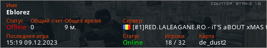 Играет на Counter Strike 1.6 сервере. Страна: РумынияПервый раз замечен 13:31 09.12.2023