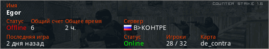 Играет на Counter Strike 1.6 сервере. Страна: РоссияПервый раз замечен 02:17 02.02.2022